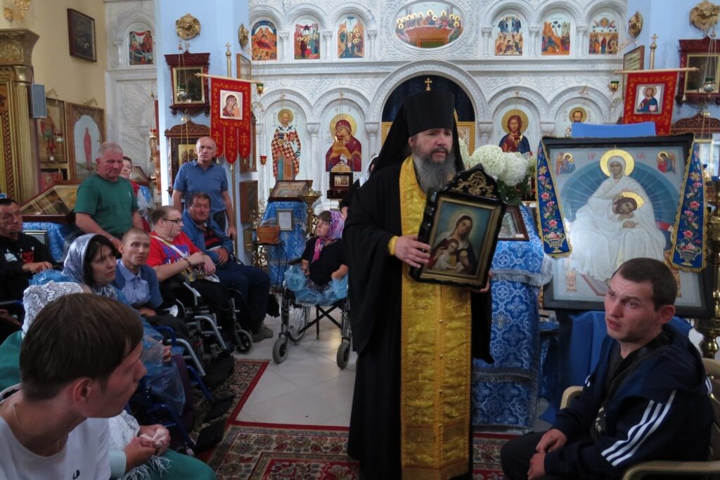 7 августа 2025 года приходской совет Сретенского храма г. Пушкино в рамках постоянного окормления лиц с ограниченными возможностями, проживающих в Куровском психоневрологическом интернате, организовал для 70 подопечных паломническую поездку в храмовый комплекс д. Артёмово Пушкинского г.о. Это святое место относится к приходу Страстной церкви, настоятелем которой является игумен Феофан (Замесов). Священник и его помощники радушно встретили посетителей и провели для них экскурсию по Почаевскому и Страстному храмам, входящим в состав комплекса. Игумен Феофан рассказал участникам встречи об истории создания прихода в д. Артёмово, познакомил с храмовыми святынями и помазал всех освящённым елеем. Гости получили небольшие памятные подарки, сделали общую фотографию и пропели многолетие. Благодаря тому, что все входы артёмовских церквей оборудованы пандусами, посетители, в силу болезней пользующиеся инвалидными колясками, смогли без труда посетить все объекты. В завершение встречи гости поблаго