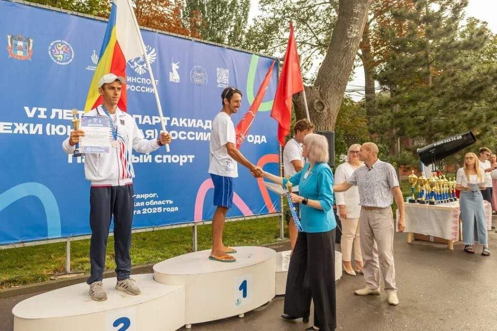 11 сентября в Таганроге завершился финал VI летней Спартакиады молодежи России по парусному спорту, в котором приняли участие более 100 спортсменов из 18 регионов. Спортсмены в течение четырех дней боролись за победу в 9 классах яхт: «470», «Финн», «420», «Лазер-стандарт», «Луч», «Лазер-радиал», «Луч-радиал» и парусная доска IQF. Как сообщила глава Таганрога Светлана Камбулова, по итогам соревнований командный зачет выиграла сборная команда Санкт-Петербурга. «Серебро» — у сборной команды Москвы. Команда Ростовской области, в состав которой вошли 11 молодых и талантливых яхтсменов, заняла третье место. «От всей души поздравляю всех победителей и призеров! Гордимся вашими достижениями и ждем вас вновь на гостеприимной таганрогской земле», — написала в своем telegram-канал глава города. Ранее мы рассказали, что таганрогская лучница взяла «золото» на чемпионате России. Фото: telegram-канал Светланы Камбуловой