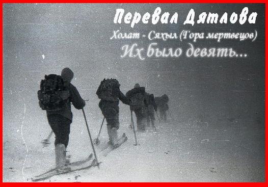 ...Пришло время поведать о самой грустной и трагичнейшей из всех человеческих горноуральских историй последнего времени.Гибель девяти студентов-туристов Уральского политеха в далёком теперь уже 1959-м.За прошедшие полвека история эта пополнилась множеством дополнительных фактов, гипотез, исследований, серьёзных, научных, иногда околонаучных и совсем уж - мистических и эзотерических. Но истина, как мне видится, до сих пор находится «где-то там»...Итак, группа молодых геологов - студентов Уральского политехнического института в январе 1959 года пошли в турпоход на Северный Урал под руководством Игоря Дятлова – студента-пятикурсника того же института... Не вернулись. «Их было 9». Эта фраза выбита сегодня на табличке, находящейся у места гибели группы, которое так и называют – «Перевал Дятлова».Тогда, в далёком 1959-м, это была одна из опытных групп, которые многократно ходили в походы высшей категории сложности. Они были отлично подготовлены, обучены, снаряжены также не плохо - всем самым необходимым...Но в ночь с 1 на 2 февраля 1959 года группа в полном составе погибла...После долгих поисков все участники были обнаружены. При восстановлении картины событий открылись факты, породившие очень много вопросов, ответов на которые нет до сих пор... Картина происшествия оказалась абсолютно необъяснимой, противоречивой, не поддающейся никакому логическому объяснению. Действия туристов были в высшей степени алогичны и нерациональны. Некоторые факты происшествия до сих пор вселяют ужас и ставят в тупик даже серьёзных исследователей, в том числе и опытнейших туристов.Этот случай считается одной из нерешенных загадок всего двадцатого века... о нём пишут, снимают фильмы, сочиняют песни и музыкальные композиции не только у нас в России и бывшем СССР, но и в самом дальнем зарубежье.