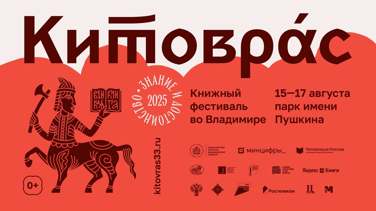 Книжный фестиваль «Китоврас - 2025» Мероприятие пройдёт с 15 по 17 августа 2025 года во Владимире в парке имени А. С. Пушкина. В этом году фестиваль откроется уже в пятый раз. Лекции, мастер-классы, творческие встречи и презентации книг пройдут в шатрах-лекториях и на главной сцене парка имени А. С. Пушкина, а также в государственных библиотеках. Во Владимир привезут свои книги около 100 издательств, в том числе представители Республики Беларусь. Издательство «Легион» представит весь ассортимент учебно-методической литературы на выставке-продаже. Страница фестиваля ВКонтакте