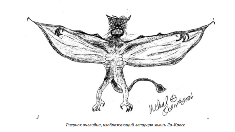 В 2006 году на Бриггс-роуд в Ла-Кроссе произошло нечто невероятное. Индеец Вохали и его сын ехали по дороге, когда перед ними возникло огромное крылатое чудовище. Существо было около шести футов ростом, с острыми зубами и кожистыми крыльями, как у летучей мыши, длиной 10-12 футов. У него были человеческие ноги с когтями и выступающие рёбра. Монстр подлетел к машине и издал крик, а затем скрылся за деревьями. Вохали и его сын почувствовали себя плохо и были вынуждены остановиться на обочине, чтобы их стошнило. Они не могли прийти в себя целую неделю. Через 18 дней на место происшествия прибыла исследовательница Линда Годфри. Она не обнаружила следов существа, но нашла в лесу, куда оно улетело, изуродованную тушу оленя. У животного не было задних ног и кишечника, но крови не было.