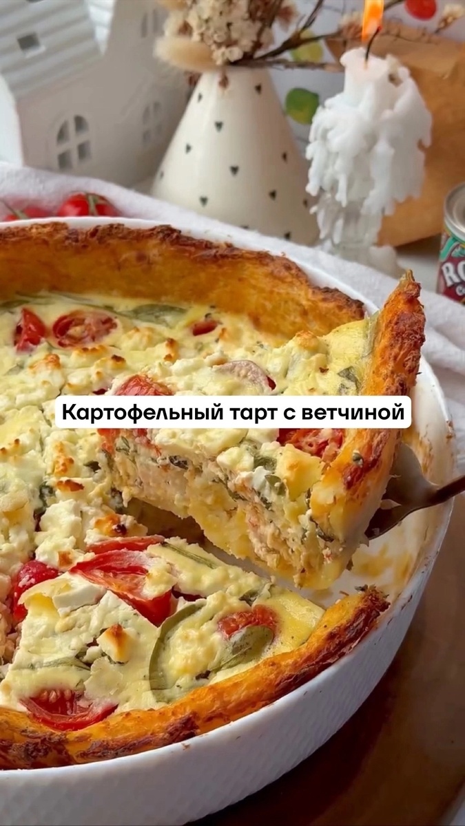 Привет, мои дорогие! ❤️ Как часто бывает, что хочется приготовить что-то особенное, но времени катастрофически не хватает? Прям вот до боли знакомая ситуация, правда? Я сама такая же! И знаешь, что я нашла? Настоящий секрет, как создать кулинарный шедевр без лишних хлопот. Речь идет о картофельном тарте с ветчиной. Это блюдо – мой личный фаворит, потому что оно выглядит так, будто ты полдня стояла у плиты, а на самом деле готовится удивительно быстро. Представь себе: хрустящая, ароматная картофельная основа, которая не уступает настоящему тесту, но при этом гораздо проще в исполнении. А сверху — нежная, сочная начинка из ветчины, помидорок черри и шпината. И всё это под воздушной шапкой из яично-сметанной заливки и пикантного сыра фета... М-м-м, ты уже чувствуешь этот аромат? Это не просто ужин, это настоящий праздник вкуса, который создаст уют и тепло в вашем доме. Идеально к бокалу белого вина вечером или просто так, чтобы порадовать своих близких. В общем, готовься записывать, потом