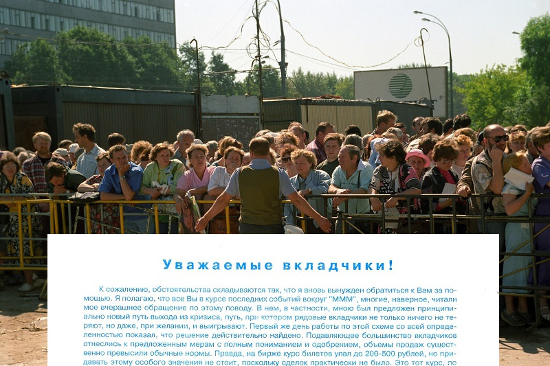 Сейчас часто вспоминают Мавроди и его МММ. Мне тоже есть что вспомнить! Гризли не был в числе обманутых вкладчиков, но сохранил в своих архивах последнее обращение Мавроди к своей пастве, когда он уже одной ногой был в тюрьме в 1995 году. Могу рассказать подробности... К тому времени МММ уже закрыли. Мавроди быстро стал депутатом и сохранил иммунитет от преследования. Поэтому билеты МММ еще можно было приобрести, но за смешные деньги (полагаю, по цене бумаги на которой они напечатаны). Такую точку продаж я обнаружил в кассах кинотеатра Ударник. Там же лежали листовки с Обращением к вкладчиках. Я взял одну на память и теперь достал для вас из закромов. Скан в большом разрешении доступен тут. Кинотеатр Ударник тогда сдавал помещения всем желающим. Там был музыкальный магазин компакт-дисков, которым владел мой знакомый, к которому я приезжал. Справа от входа располагался офис «Автомобильного альянса AVVA» Березовского, который обещал всем Жигули по-дешевке. А в сквере немые (реально, не