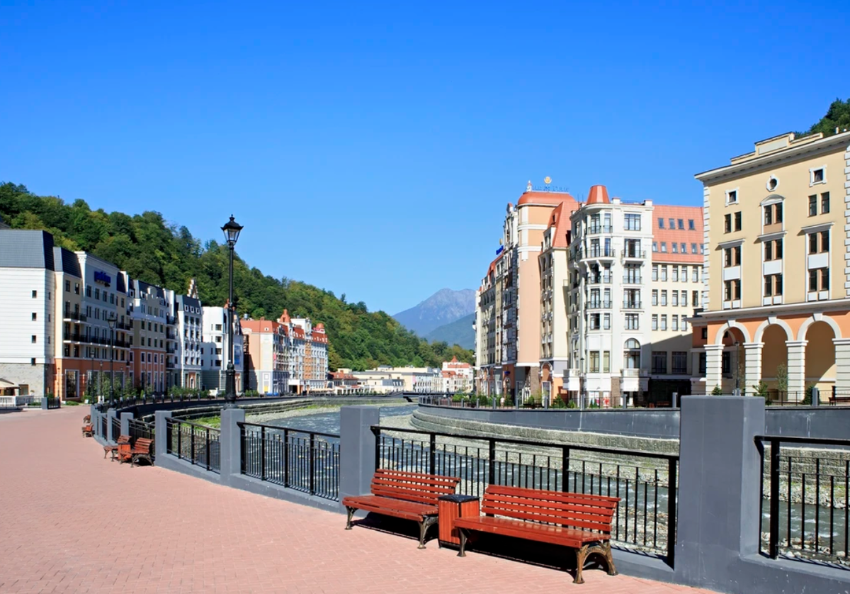Поселок Роза Хутор — прогулка по альпийскому поселку с изящными домами и ресторанами европейского уровня.