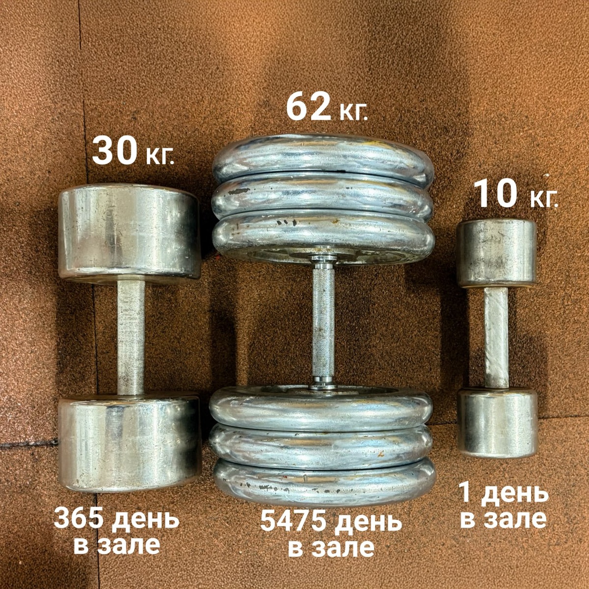 Коротко о моём прогрессе в спортзале 💪 Как и в любом деле, в которое мы вкладываем своё внимание, результат всегда будет. Даже если сначала его не видно. Это мой тренировочный вес в упражнении на спину - Тяга гантели в наклоне 62,5 кг. 8 раз на 3 подхода… Пора добавлять. P.S. У всех своя генетика, и от неё очень многое зависит в этом процессе. У кого-то все мышцы растут одинаково, у кого-то все растут по-разному, а у кого-то хорошо растут несколько групп мышц, поэтому приходится больше стараться для роста. Так и в творческом росте: у кого-то есть врождённый талант, а кому-то надо его развивать и больше стараться.
