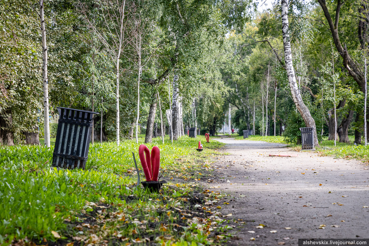 Было бы идеально вписать в общую концепцию пустырь непосредственно у бывшего дома Рыжего. Долгое время участок находился в запустении (трава вымахала под полтора метра, кустарники сплелись между собой ветками). И только после общественного резонанса мэрия навела маломальский порядок. Тем не менее, согласитесь, перемены здесь буквально напрашиваются.