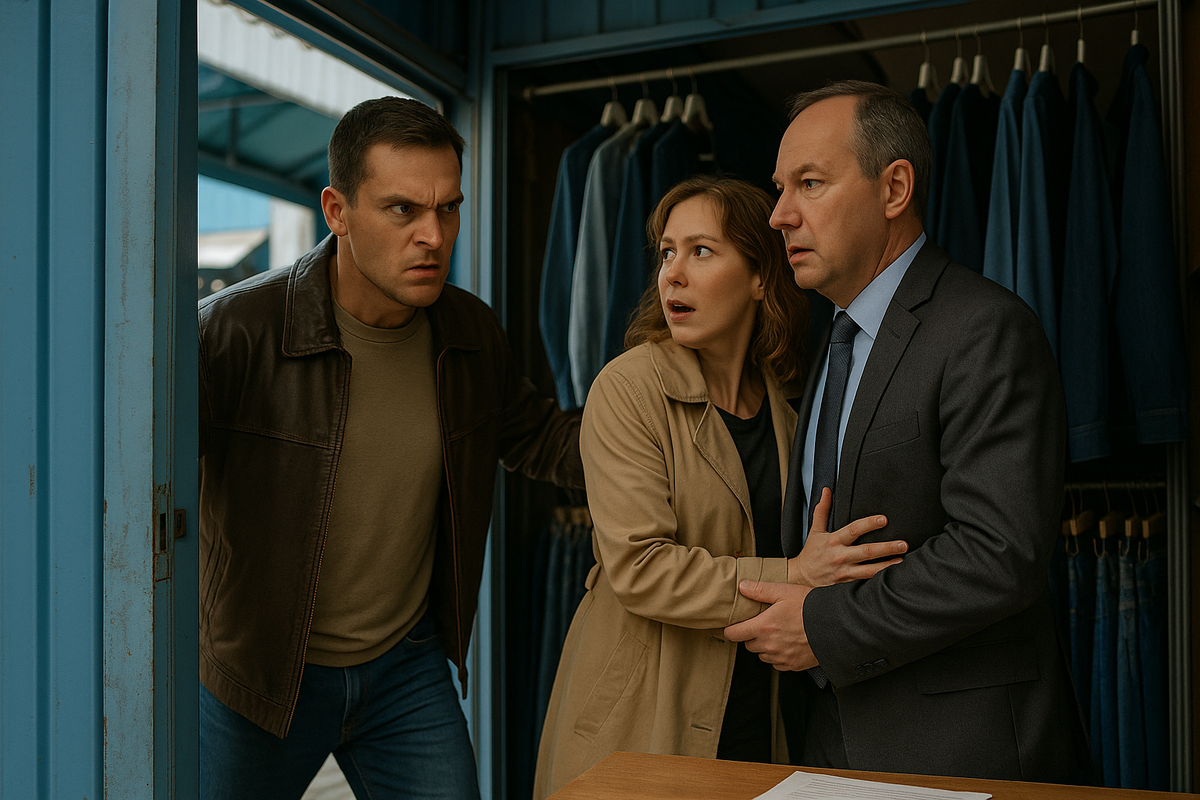 Вот показался знакомый голубой контейнер с вывеской, где Наталья торговала одеждой. Подбежав, Александр увидел, что дверь контейнера приоткрыта. Внутри были слышны два голоса — мужской и женский, тихо переговаривались. Он узнал голос жены.