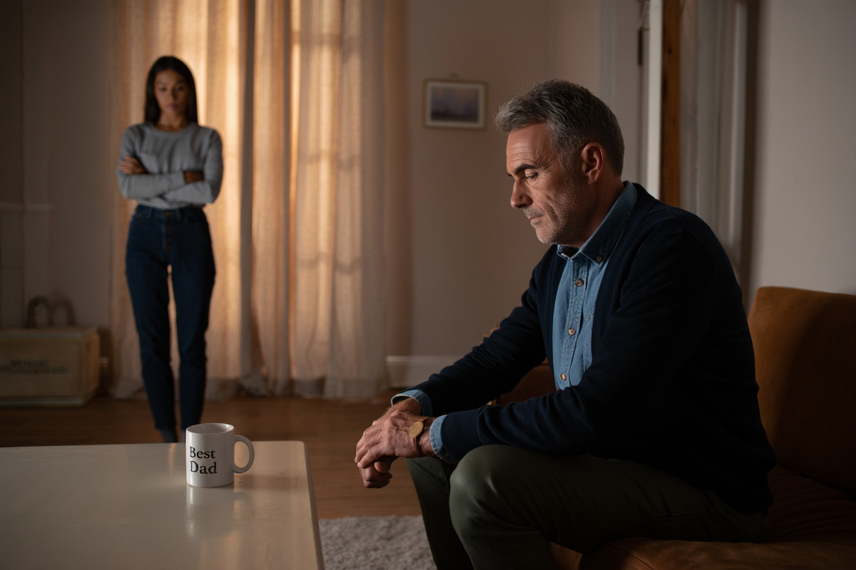 Он кивнул благодарно, будто я предложила ему спасительный круг. На кухне я достала мамину кружку — ту самую, с надписью «Лучший папа». Поставила перед ним. Он посмотрел на неё и побледнел.