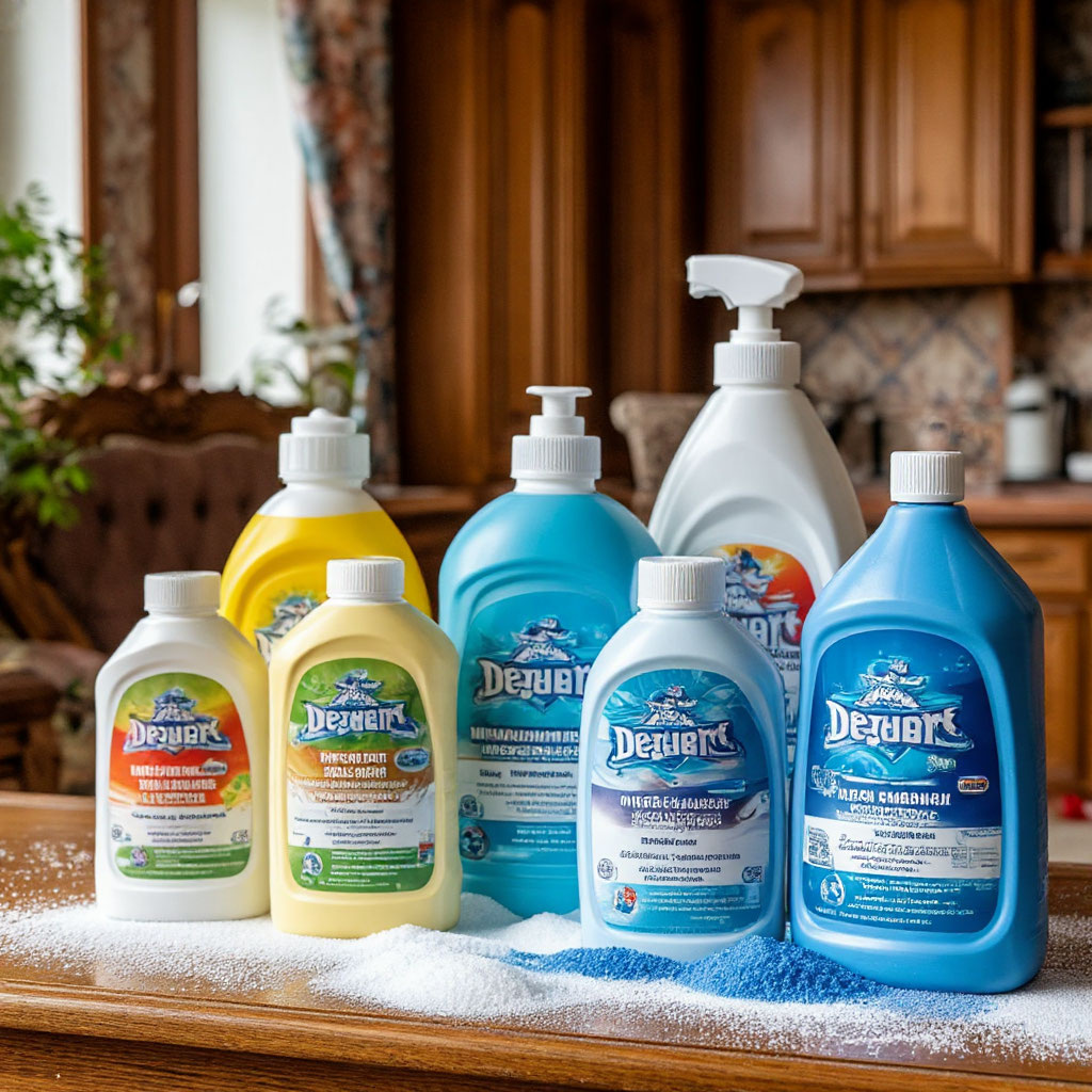 Описание: широкий спектр средств бытовой химии, включая обладательные для мебели.