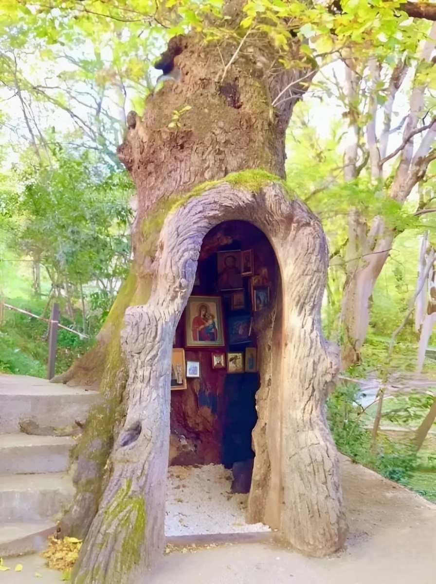 В самом сердце Кутаиси, среди зелени ботанического сада, стоит многовековой дуб-исполин. Ему уже больше 400 лет, а его ствол такой широкий, что в нем легко поместилась бы небольшая комната. Природа сама подготовила место для чуда – со временем в дереве образовалась просторная полость, а в 2014 году здесь освятили крошечную часовню в честь Архангела Михаила.