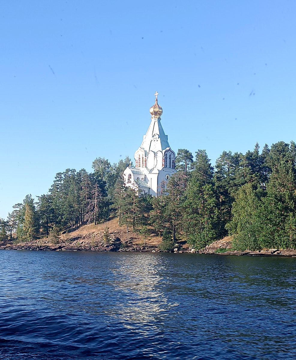 Валаам — остров в северной части Ладожского озера, самый большой в составе Валаамского архипелага. Расположен в Республике Карелия, на территории Сортавальского района. Валаам стал этапом нашего туристического маршрута, куда группа выезжает на весь день. Выехали рано, около двух часов добирались до Приозерска, откуда на метеоре еще час плыли по Ладожскому озеру. Красота вокруг потрясающая! Первобытная природа, Ладога, леса и исполинские валуны! Но главным предвкушением была встреча с монастырями, с сакральной, религиозной сутью острова... Которую я так и не ощутила. Но почему??? Казалось бы, одно понимание того, в каком месте ты находишься, уже должно настроить тебя на нужный лад. Лишь ступая на берег Валаама, встречаешь часовенку: Далее - начинается неспешный путь по Центральной усадьбе острова, где вас познакомят и со зданиями гостиницы, и с памятниками, и с историческим событиями, связанными с островом, и с самим монастырем. Мы побывали на концерте певчих Валаамского монастыря - не