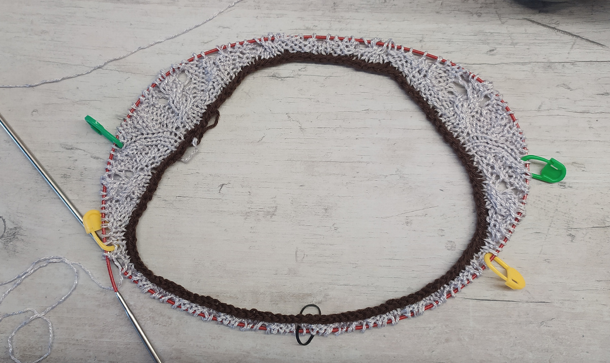 Продолжаю работу по улучшению джемпера с косами. Перешла на петли переда - новый этап - горловину вывязываю. Делаю поворотные ряды в изнаночных дорожках. По переду в моей горловине следующая комбинация рисунка: изнанка, лицевая, четыре повтора раппорта, лицевая, изнанка; всего 60 петель. Моя задача вязать поворотными рядами, развороты в изнаночных дорожках. Для упрощения понимания задачи сделала себе шпаргалку. Прибавки выполняю в каждом ряду по внешним краям погона. Правая сторона: Левая сторона: Чтобы было понятнее сняла видео, ссылка на Телеграмм Делая поворотные ряды, главное не забыть о рисунке: нужно следить за направлением кос. Я "упростила" себе работу один джемпер уже готов, есть на что ориентироваться, мне достаточно сложно просчитывать и прогнозировать план рисунка. А как вы справляетесь с такой работой? Что вам помогает вписать рисунок в прибавки?