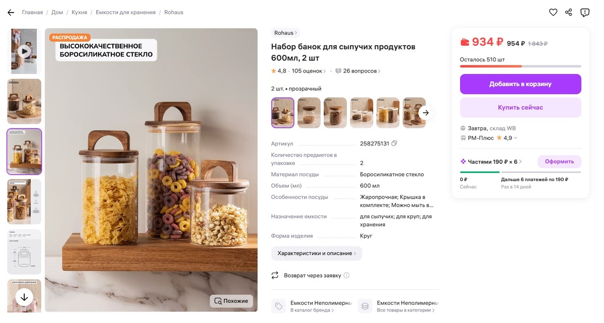 💬 Важно: я ничего не навязываю, просто делюсь личным опытом. Эта подборка - для вдохновения и хорошего настроения. Доброе утро, подписчики! Кухня - это сердце дома. Здесь мы начинаем утро с чашки кофе, готовим любимые блюда и собираемся всей семьёй за столом. И так приятно, когда вокруг всё не только удобно, но и красиво. Сегодня я собрала для вас несколько полезных мелочей с Wildberries, которые украсят кухню и помогут поддерживать порядок. Две аккуратные банки по 600 мл из прочного боросиликатного стекла - отличное решение для круп, сахара, кофе или чая. Крышки из дерева акации не только стильные, но и долговечные, с природными антибактериальными свойствами. Банки компактные, легко помещаются на полке или столе, а дизайн подойдёт к любой кухне. Продукты в них дольше остаются свежими, а кухня аккуратной. Отличный вариант и для себя, и в подарок. Артикул: 258275131 Кружка с блюдцем ручной работы - это не просто посуда, а маленькое украшение кухни. Сделана из прочной керамики, хорошо