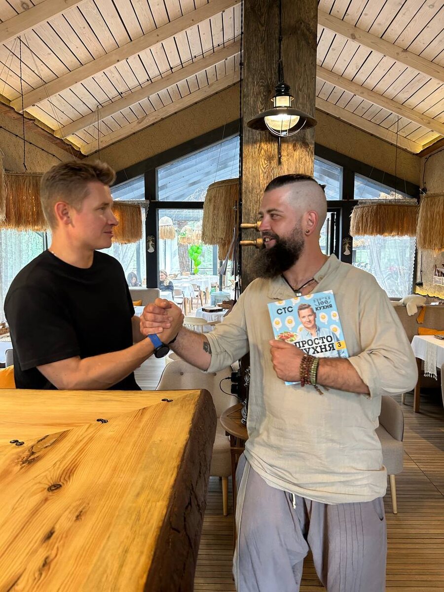 🎬 Съёмки программы «100 мест, где поесть» с Александром Бельковичем для телеканала СТС прошли в ресторане «Солома».
