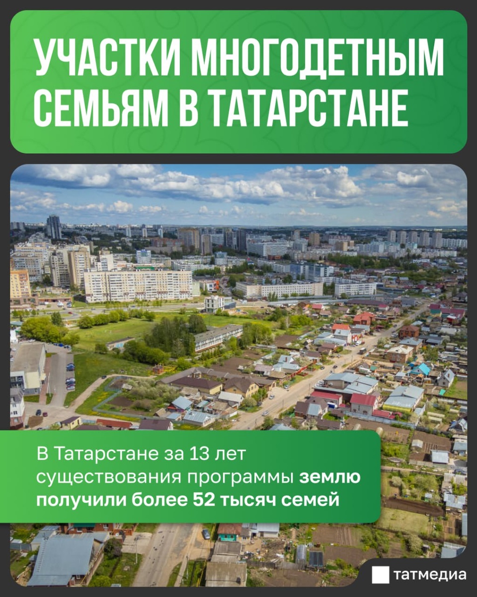 В ответ на пост 🏠👨👩👧👦В Татарстане рассказали, как многодетным семьям выдают землю Кому уже достались участки, где ощущается дефицит и как районы помогают друг другу – рассказываем в карточках. Программа реализуется Министерством земельных и имущественных отношений Республики Татарстан. @tatmediaofficial | Все каналы Татмедиа
