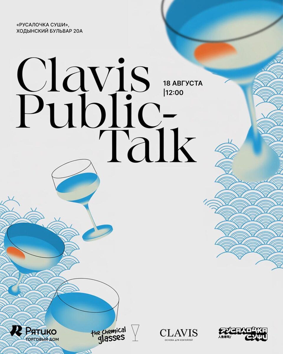 CLAVIS 2.0 Мы собрали команду бренд-мастеров из профессионалов индустрии, проделали колоссальную работу,чтобы вам было вкуснее и сочнее, и готовы приглашать на наши коктейльные бранчи. Отправная точка - Москва,18 августа в 12:00, в азиатской и стильной «Русалочке», Ходынский Бульвар 20А 🍱🍶 Проведём дружеский public-talk на полезные и интересные темы: - «Применение кордиалов в азиатских барах», спикер бренд-амбассадор Clavis Алексей Каменев и бренд-мастер Илья Рыжих - «Как продавать саке в баре?», спикер Шигин Сергей - «Плюсы и минусы качественной барной посуды», спикер Владимир Аринушкин - владелец бренда барной посуды The Chemical Glasses. У каждого будет возможность задать вопрос спикерам, пообщаться с коллегами из индустрии, приятно провести время и, конечно же,не уйти без подарков от наших друзей из Рятико и The Chemical Glasses В Москве будем осенью в разных локациях и с крутыми историями. А также в августе ждём всех в следующих городах: 21 августа - Новосибирск 25 авгу