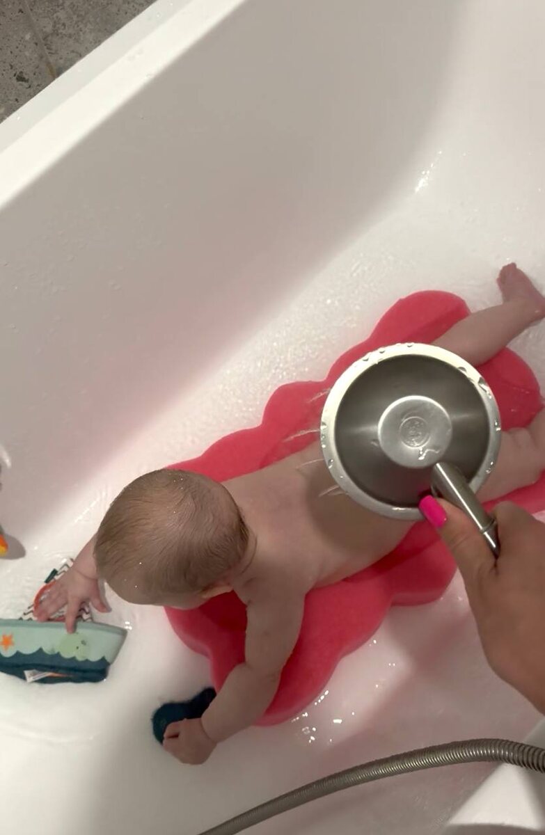 Малышки очень удобно лежать на животике😎 стали намного дольше купаться и ей интересно играть игрушками