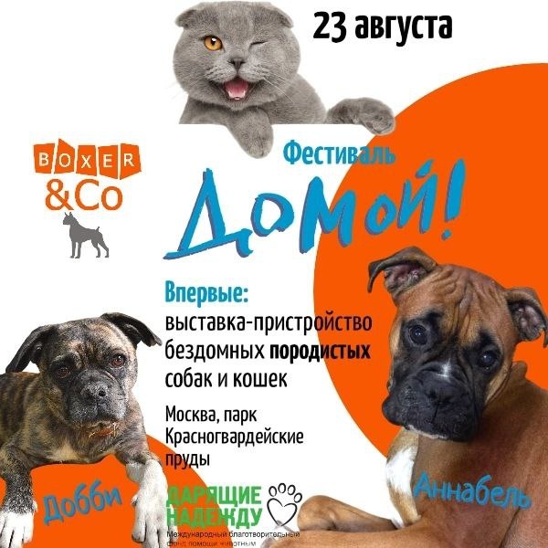 Московская команда помощи собакам породы боксер Boxer&Co приглашает всех посетить Фестиваль "ДОМОЙ". Команда участвует в составе Аннабель и Добби в сопровождении Екатерины и Маргариты. На фестивале можно будет познакомиться с деятельностью и представителями различных команд помощи породистым собакам и кошкам, выбрать и "усыновить" понравившегося питомца. А так же поддержать участников БоксерКо (морально и бутербродами) и воочию увидеть нашего эксклюзивного домашнего эльфа Добби. До встречи 23.08.2025 в парке Красногвадрейские пруды. 😘