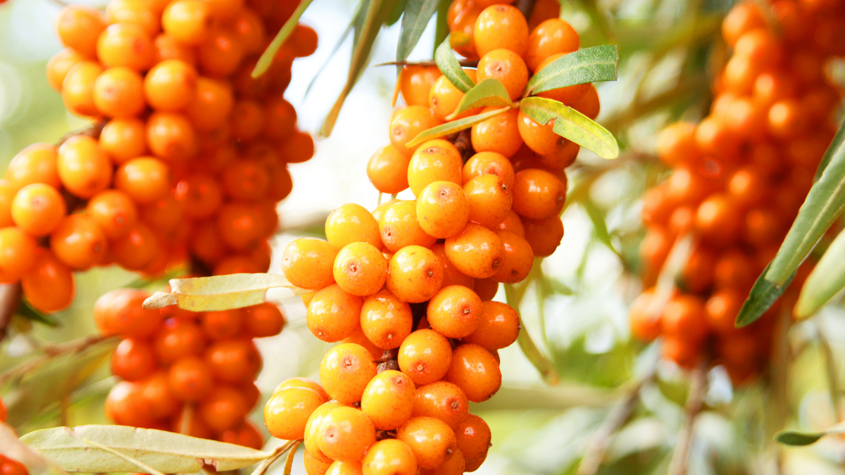 Листья: Узкие, серебристо-зеленые, характерные для облепихи.