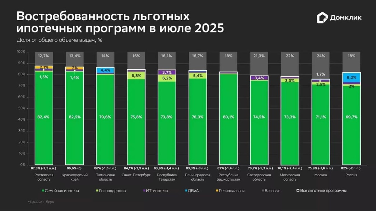 πͺ Π‘Π±Π΅ΡΠ±Π°Π½ΠΊ Π² ΠΈΡΠ»Π΅ 2025 Π³ΠΎΠ΄Π° Π²ΡΠ΄Π°Π» Π»ΡΠ³ΠΎΡΠ½ΡΡ ΠΈΠΏΠΎΡΠ΅ΠΊΡ Π½Π° ΡΡΠΌΠΌΡ 187,6 ΠΌΠ»ΡΠ΄ ΡΡΠ±Π»Π΅ΠΉ β ΠΠΎΠΌΠΊΠ»ΠΈΠΊ ΠΠΎΠ»ΡΡΠ΅ ΠΏΠΎ Π»ΡΠ³ΠΎΡΠ½ΡΠΌ ΠΏΡΠΎΠ³ΡΠ°ΠΌΠΌΠ°ΠΌ Π‘Π±Π΅ΡΠ±Π°Π½ΠΊ Π²ΡΠ΄Π°Π²Π°Π» ΡΠΎΠ»ΡΠΊΠΎ Π² ΠΈΡΠ½Π΅ 2024 Π³ΠΎΠ΄Π° β ΡΠΎΠ³Π΄Π° ΠΎΠ±ΡΠ΅ΠΌ Π΄ΠΎΡΡΠΈΠ³ 354 ΠΌΠ»ΡΠ΄ ΡΡΠ±Π»Π΅ΠΉ, ΡΡΠΎ ΠΎΠ±ΡΡΡΠ½ΡΠ»ΠΎΡΡ Π°ΠΆΠΈΠΎΡΠ°ΠΆΠ½ΡΠΌ ΡΠΏΡΠΎΡΠΎΠΌ ΠΏΠ΅ΡΠ΅Π΄ ΠΎΡΠΌΠ΅Π½ΠΎΠΉ ΠΌΠ°ΡΡΠΎΠ²ΠΎΠΉ Π»ΡΠ³ΠΎΡΠ½ΠΎΠΉ ΠΈΠΏΠΎΡΠ΅ΠΊΠΈ. π΅ ΠΠΎΠ»Ρ Π»ΡΠ³ΠΎΡΠ½ΠΎΠΉ ΠΈΠΏΠΎΡΠ΅ΠΊΠΈ Π² ΠΈΡΠ»Π΅ ΠΎΡΡΠ°Π»Π°ΡΡ Π²ΡΡΠΎΠΊΠΎΠΉ β 82% ΠΎΡ Π²ΡΠ΅Π³ΠΎ ΡΡΠ½ΠΊΠ° (ΡΠ½ΠΈΠΆΠ΅Π½ΠΈΠ΅ Π½Π° 2 ΠΏ.ΠΏ.). ΠΠΎΠ»Ρ ΡΠ΅ΠΌΠ΅ΠΉΠ½ΠΎΠΉ ΠΈΠΏΠΎΡΠ΅ΠΊΠΈ ΡΠΎΡΡΠ°Π²ΠΈΠ»Π° ΠΎΠΊΠΎΠ»ΠΎ 70% ΡΡΠ½ΠΊΠ°. π΅ΠΠ°ΠΈΠ±ΠΎΠ»ΡΡΠ°Ρ Π΄ΠΎΠ»Ρ ΡΠ΅ΠΌΠ΅ΠΉΠ½ΠΎΠΉ ΠΈΠΏΠΎΡΠ΅ΠΊΠΈ Π·Π°ΡΠΈΠΊΡΠΈΡΠΎΠ²Π°Π½Π° Π² Π₯Π°ΠΊΠ°ΡΠΈΠΈ (91,9%), ΠΠ΄ΡΠ³Π΅Π΅ (91,1%) ΠΈ ΠΡΡΡΠ°Ρ