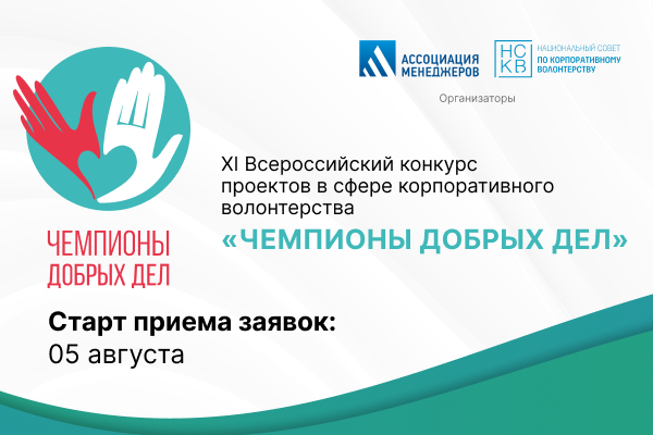 Национальный совет по корпоративному волонтерству (НСКВ) и Ассоциация менеджеров объявляют о начале приема заявок на XI Всероссийский конкурс «Чемпионы добрых дел». Уже более десяти лет конкурс выявляет передовой опыт и наиболее успешные практики корпоративного добровольчества в России, которые являются частью корпоративных стратегий устойчивого развития и содействуют реализации национальных целей развития нашей страны.