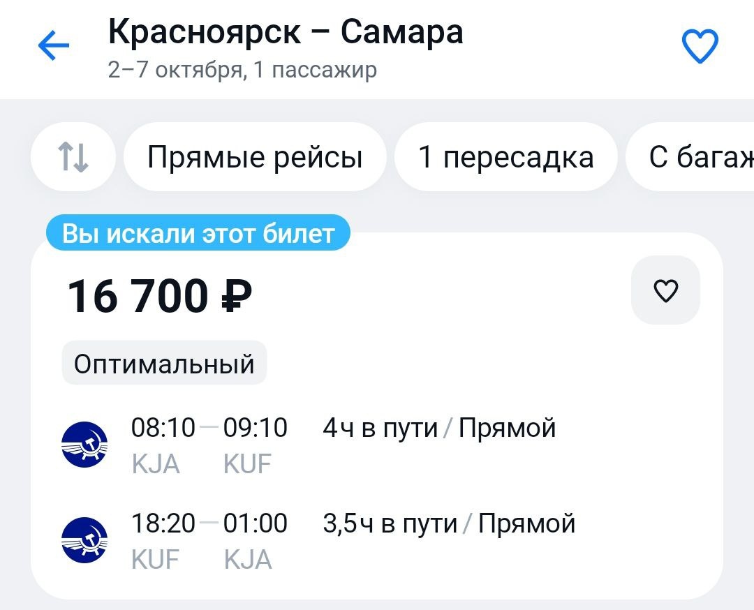 Ещё одна стабильность на букву С — Самара. С багажом! https://aviasales.tpk.mx/tcTkQtx7 #KUF @KJA