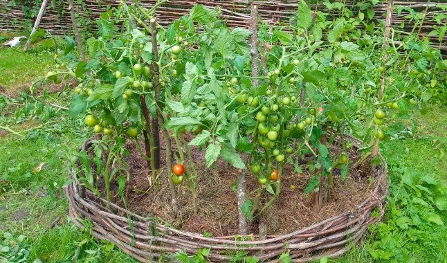 Пришлось оборвать поражённые листья, но Дачник имеет приятный вид, потому что весь усыпан плодами; даже на кустике, у которого в июне полностью отгнил стебель, и который я укоренила заново, висит одиннадцать хорошеньких помидорок!🍅