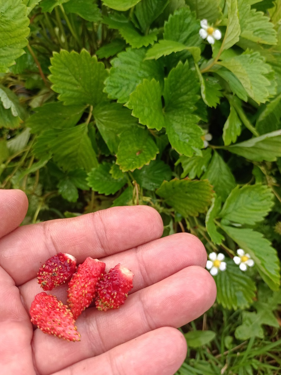 Земляника Барон Солемахер. Вот как летом начинаются ягодки, так до осени. Сладкая, крупная, ароматная. Конфитюр из неё не сделать, плодов мало, но раз в неделю жменьку собрать — самое оно.
