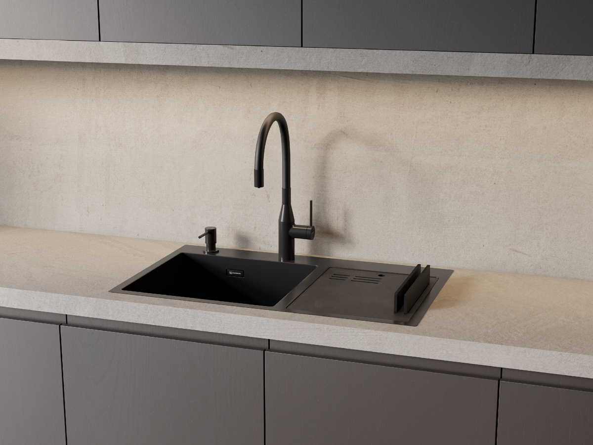 - NANO-ПОКРЫТИЕ в цвете GB “графит”. Отныне нет проблем с отпечатками пальцев на мойке или разводами от воды, еще большая защита от повреждений и царапин и самое главное – грязеотталкивающее покрытие!