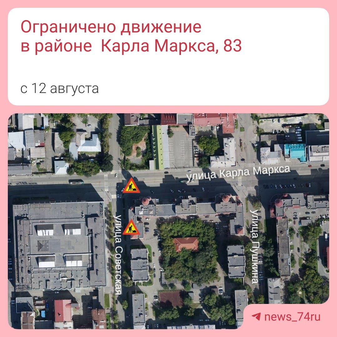 Из-за работ на инженерных коммуникациях проезд по правым полосам Советской в сторону Карла Маркса в сторону Пушкина будет затруднен.