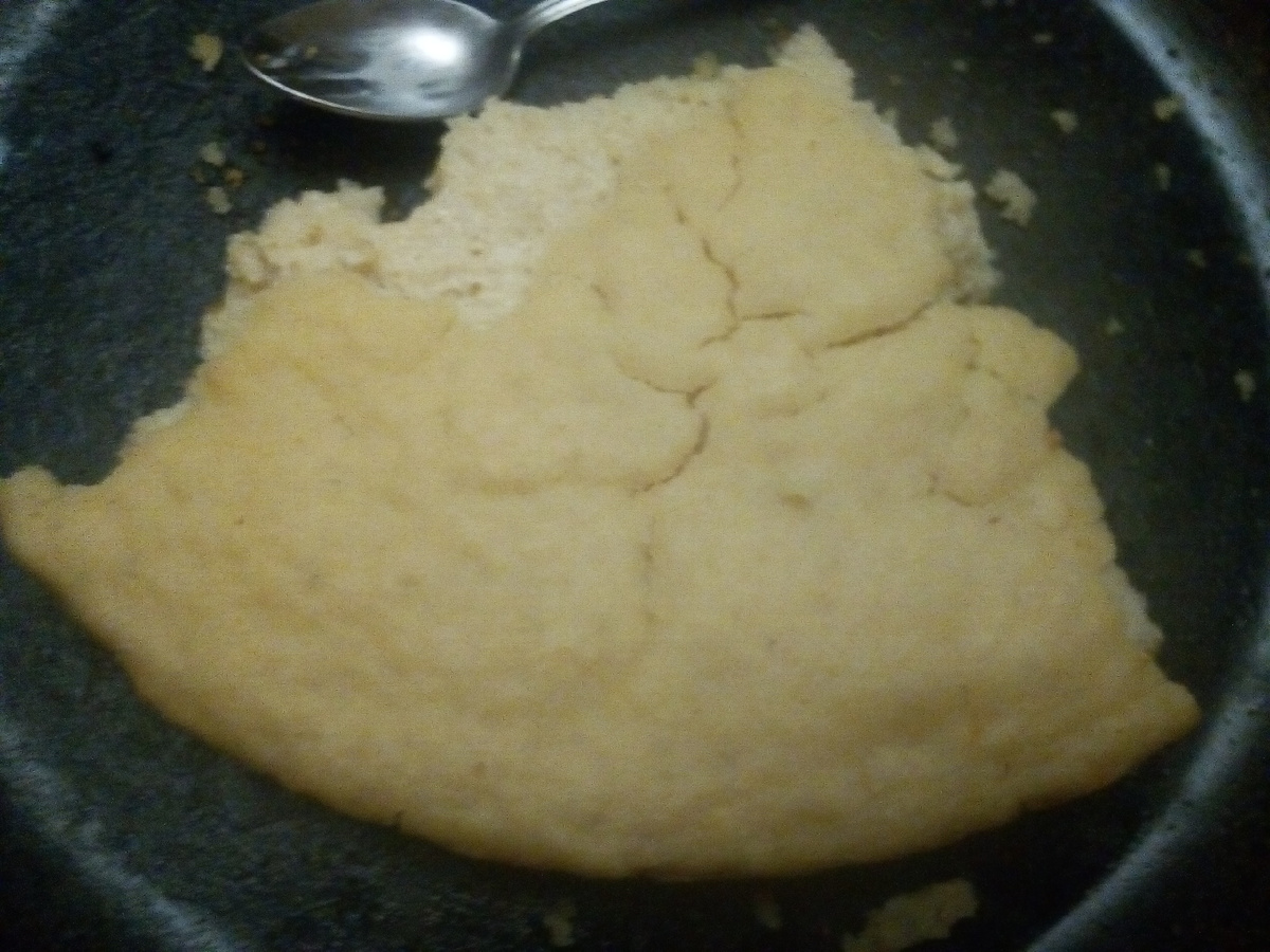 Покупаю кефир. Нагреваю многократно в кастрюле. Из кефира делаю творожок - а в тёплую сыворотку добавляю сухие дрожжи и сыплю муку, доводя до состояния "нормальное такое тесто". Ни соли, ни сахара, ни тем более яйца не добавляю. Пару ложек подсолнечного масла только. Тесто поднимается, я его дважды осаживаю. Потом выкладывю на сковордку - и в духовку. На дне духовки - ёмкость с водой, чтоб не образовывалась корка. И до готовности... Получается не хлеб и пирог, а что-то среднее. Мне нравится.... :0) Главное - просто и безопасно. Технологию можно доработать. Например, делать небольшие хлебцы, а в тесто добавить мелкорезаный репчатый лук. Кстати, можно и обжаривать потом... Это вид сверху, а это - снизу: