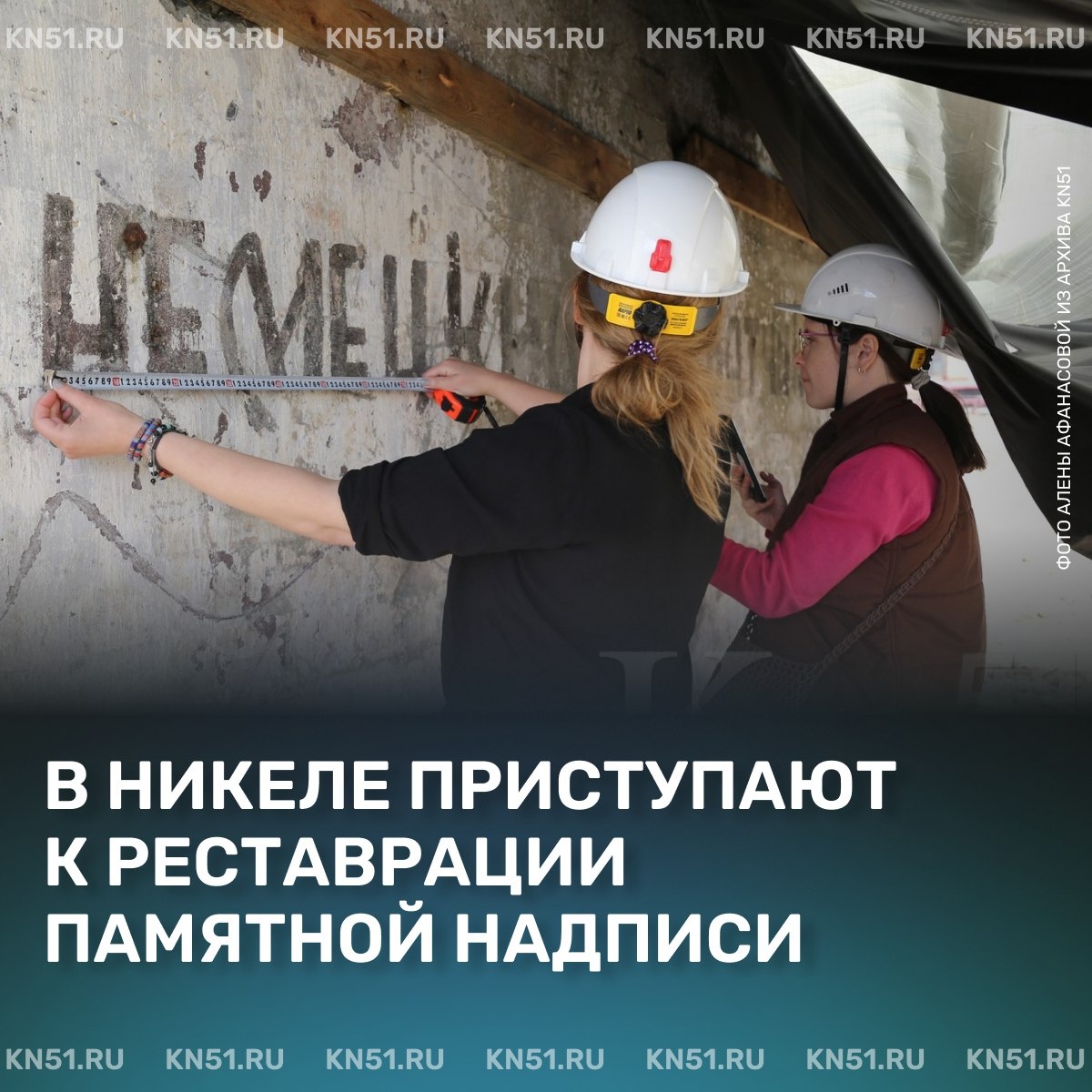 ⚡ Реставраторы определили методику реставрации и приступают к работам по сохранению исторической надписи «Смерть немецким захватчикам» в поселке Никель Памятная надпись «Смерть немецким захватчикам» была обнаружена в ноябре 2024 года при демонтаже здания дробильно-шихтовочного отделения на территории бывшего плавильного цеха Кольской ГМК в Никеле. Исторический объект много лет был скрыт за более поздней кирпичной кладкой. Определив методику консервации и реставрации надписи, специалисты лаборатории «Сохранение» приступили к реставрационным работам на историческом объекте. Проект реализуется при поддержке компании «Норникель» и администрации Печенгского округа. ➡ Подробнее kn51.ru/2025/08/12/v-nikele-pristupayut-k-restavraczii-pamyatnoj-nadpisi