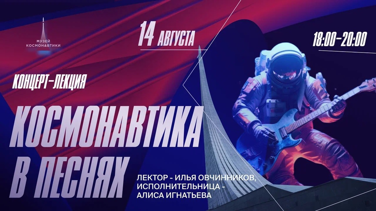 КОНЦЕРТ-ЛЕКЦИЯ В МУЗЕЕ КОСМОНАВТИКИ Родилась когда-то давно идея - вместе с моей подругой певицей, участницей шоу "Голос" Алисой Игнатьевой сделать лекцию, совмещённую с концертом, где будут песни, которые ассоциируются с различными космическими историями, событиями и людьми. И вот, мы с Алисой собрались с мыслями, идеями и договорились провести такой вот эксперимент в Музее космонавтики (спасибо музею!). Я буду проводить лекцию, а Алиса будет исполнять известные космические песни. Мы тут репетировали на прошлой неделе - вам точно понравятся песни и её голос! Приглашаем 14 августа в 17:45 на наш концерт-лекцию в Музей космонавтики (рядом с м. ВДНХ). Вход бесплатный, но с обязательной регистрацией! Регистрация доступна по ссылке! Количество мест ограничено! Приходите с друзьями, семьёй - всем будем рады! Подписывайтесь на канал Алисы Игнатьевой!