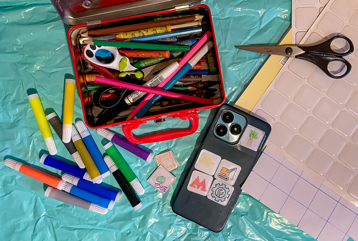 Совершенно неважно, если получившаяся "картина" явно будет далека от тех, что висят в Третьяковке. Я больше скажу: делая первые стикеры, втягиваясь в процесс и получая от него максимальное удовольствие, ребёнок наверняка будет ограничиваться простенькими одноцветными рисунками. А потом уже, наигравшись, начнёт создавать мини-шедевры.