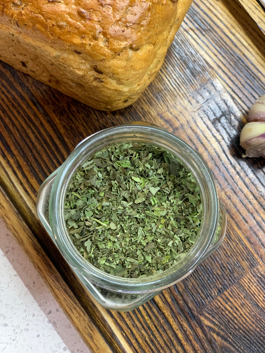 Не выкидывайте листья базилика после дачного сезона, из него получится отличная натуральная приправа к мясу, рыбе и овощам. Вы будете уверены, что используете натуральную приправу и покупать сушеные травы не будет необходимости. Соберите свежий базилик 🌿 и выложите на противень при температуре 50 градусов и отрытой дверцей духовки, поставьте сушится на 8 часов на протяжении трёх дней. У вас получится так: Затем измельчите сушенные листья: И ещё на часа четыре поставьте в духовку досушиться. После этого поместите в ёмкость для хранения.