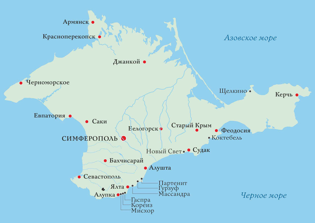 Симферополь — столица Крыма — является ключевым культурным и административным центром, а Севастополь — крупным портом и военно-морской базой, богатой со стороны военных сражений и защиты полуострова.