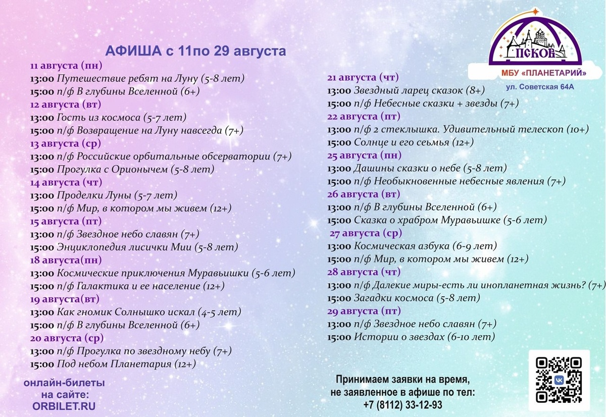 Афиша псковского планетария на август ✨