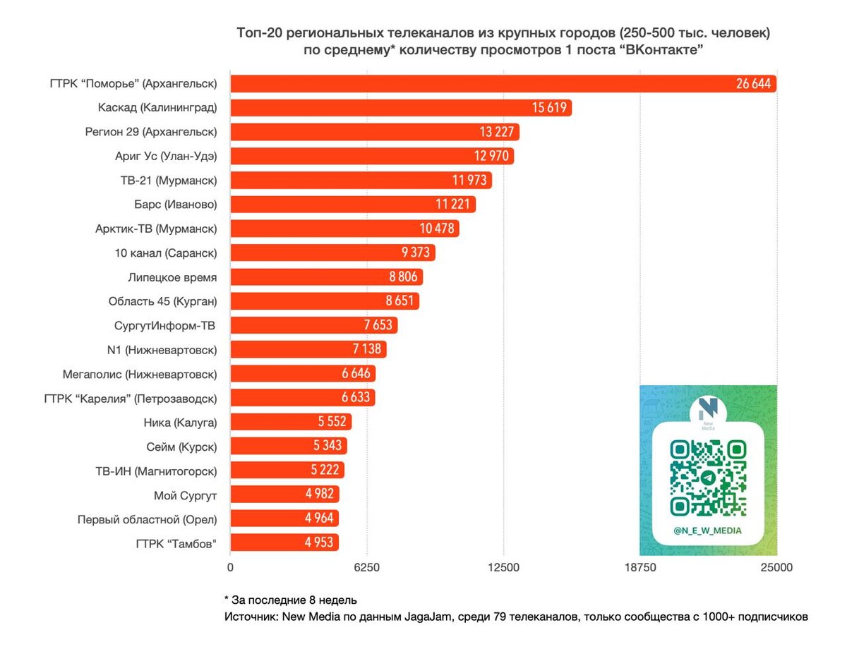 Наша группа в ВК - в числе лидеров среди региональных телеканалов по вовлеченности подписчиков и по числу просмотров! В Топ-20 региональных телеканалов "ВКонтакте" среди городов 250 - 500 тыс. человек "Первый Областной" попадает уже 8 недель подряд. Данные публикует "New Media" по данным JagaJam, среди 79 телеканалов, только сообщества с 1000+ подписчиков: ❤️ Спасибо всем, кто ставит нам лайки и пишет комментарии! @1oblastnoi