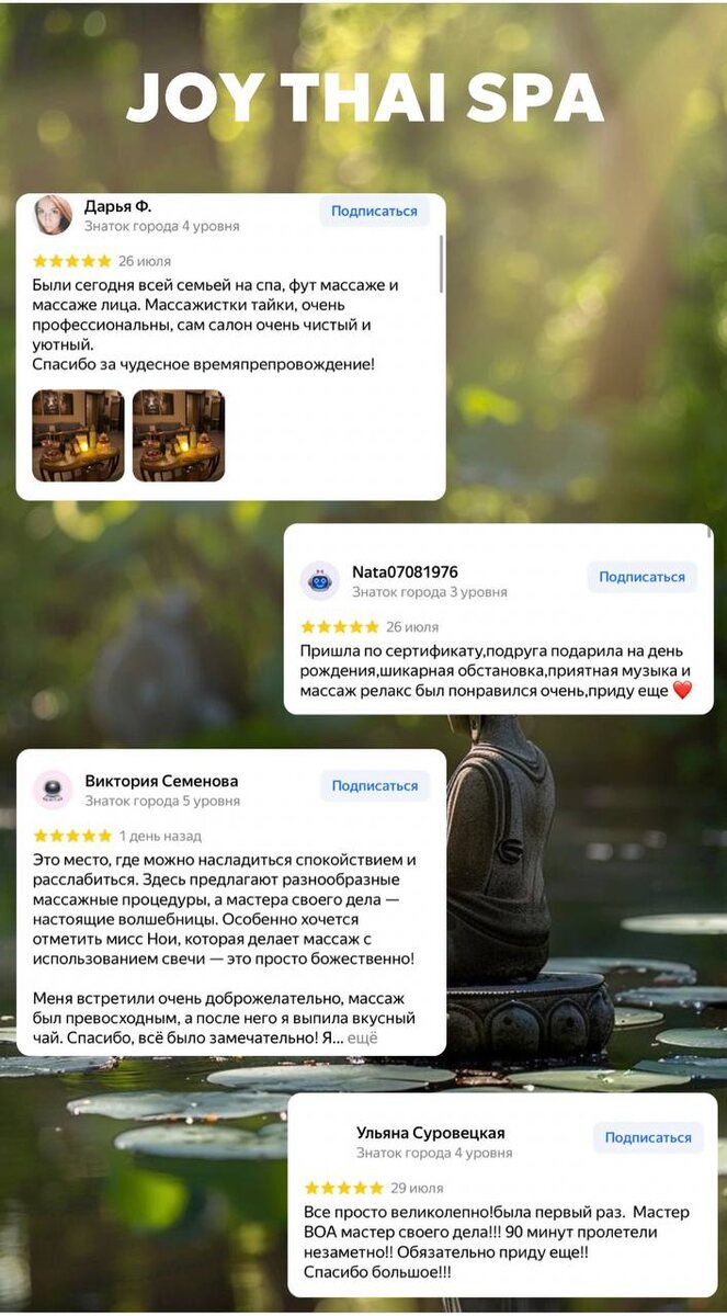 Мы гордимся возможностью дарить вам моменты расслабления, гармонии и внутреннего покоя в нашем уютном уголке счастья — Joy Thai Spa 🌿😍🤍