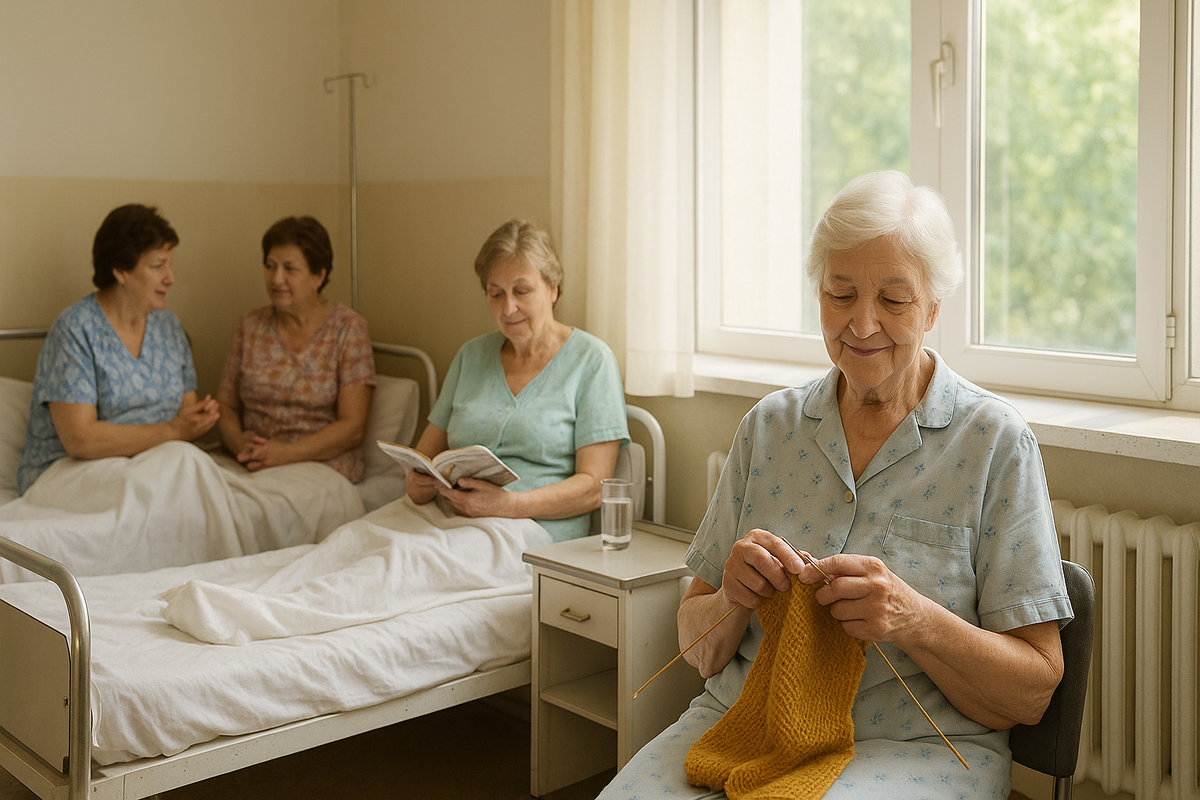 Рядом, на соседней койке, Галина Ивановна листала журнал. Ещё две женщины — Мария Павловна и Антонина Сергеевна — обсуждали телевизионные новости. После нескольких непростых недель все чувствовали себя заметно лучше: температуры нет, давление ровное, аппетит вернулся. Даже врачи улыбались, заходя в палату, и шутили, что скоро их выпишут.