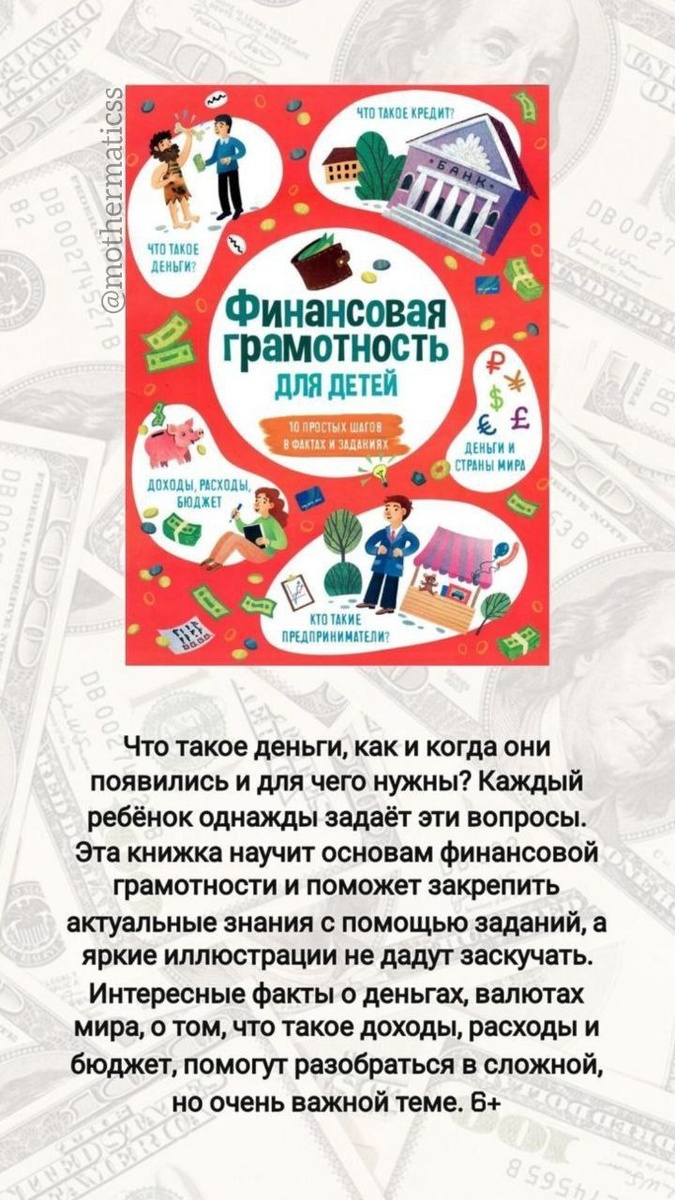 💲Деньги — не тема только для взрослых. Чем раньше ребёнок начнёт понимать, откуда берутся деньги, как их тратить с умом и зачем копить, тем увереннее он будет чувствовать себя во взрослой жизни. 📌Ловите подборку книг, которые помогут в лёгкой и увлекательной форме познакомить детей с основами финансовой грамотности. 📍Сохраняйте, чтобы не потерять! 🔴Финансовая грамотность для детей 211₽ 🟡Финансовая грамотность для детей. Зарабатываем, копим и инвестируем 666₽ 🔴Всё про деньги 292₽ 🔴6 минут для детей. Финансовая грамотность 789₽ 🟡Как работают деньги 362₽ 🔴Дотянуться до звёзды. Детям о труде, деньгах и заработке 394₽ 🔴Заработай, накопи, потрать правильно! 946₽ 🟡Пёс по имени Мани 532₽ 🔴Самый богатый человек в Вавилоне 360₽ 🔴Богатый папа, бедный папа для подростков 468₽ Какие книги ещё можно добавить в этот список?➡️