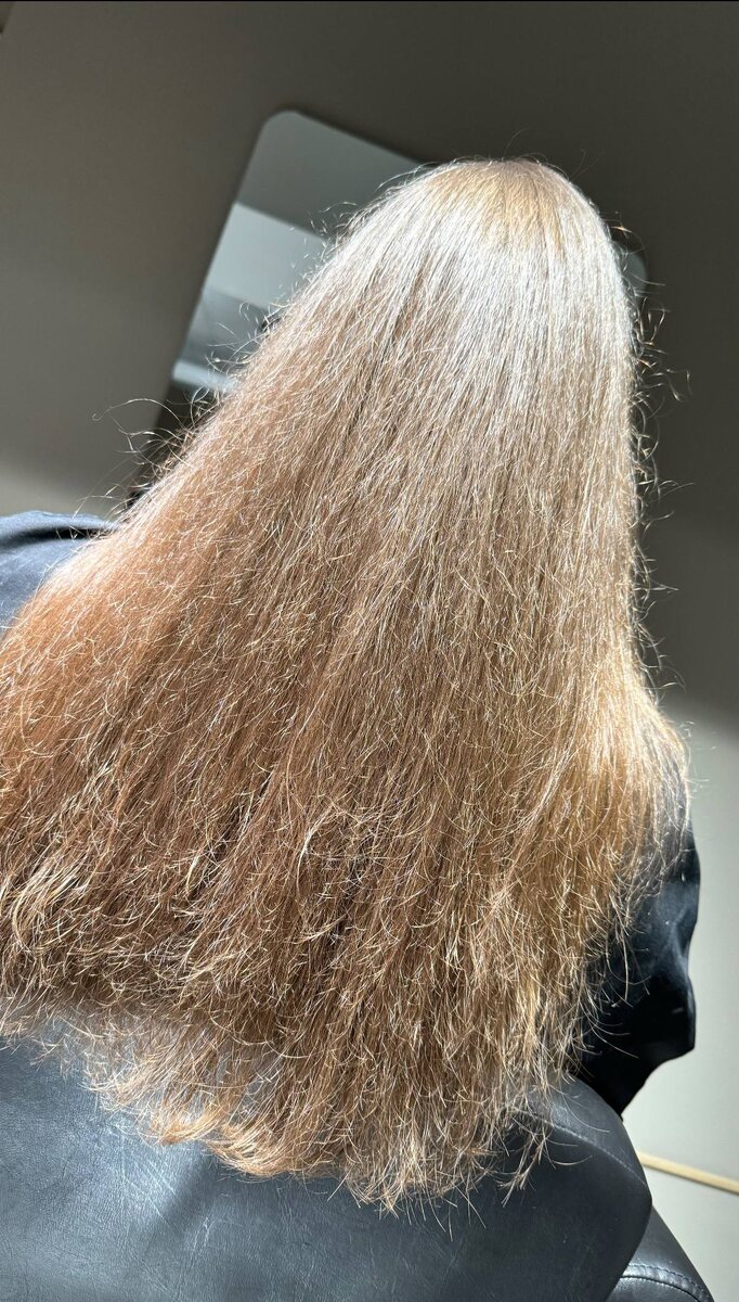До процедуры волосы были ломкими, от корней до кончиков! Все от утюжка