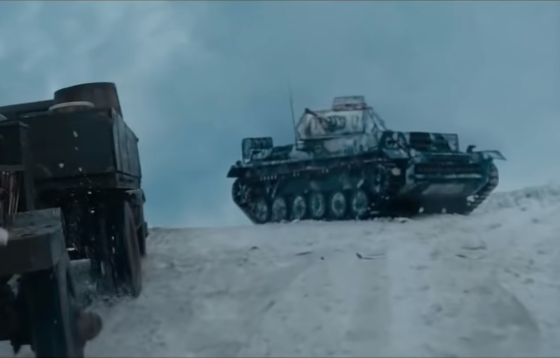 Однако Коля не из робкого десятка. Вместо того чтобы спасаться бегством в другую сторону, он решает проскочить прямо мимо танка в упор. Немцы, конечно, открывают огонь из пулемета — но всё «мимо кассы». Ведь попасть в машину, медленно идущую в гору, так сложно…