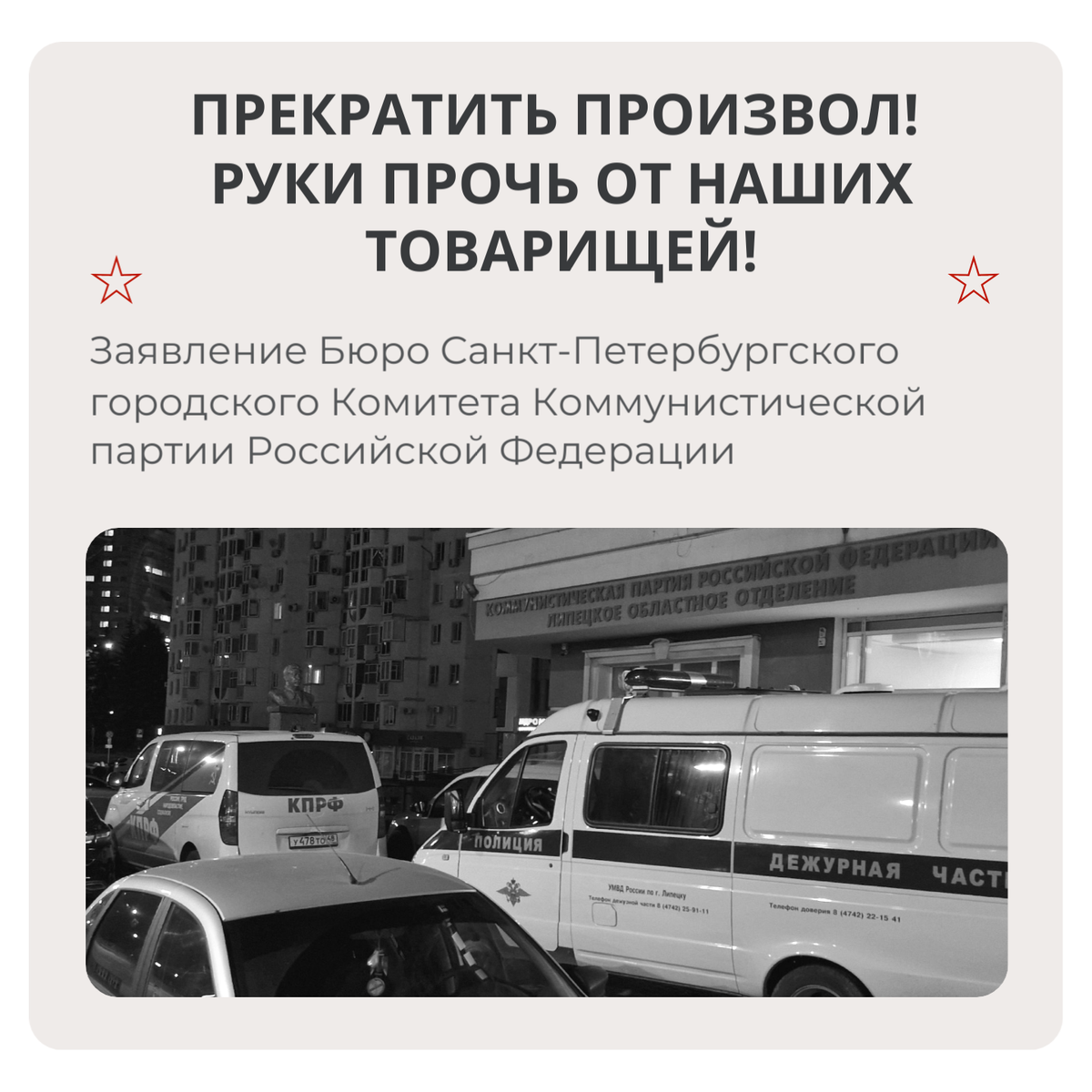 Мы призываем прекратить давление на членов и сторонников партии в Липецке!
