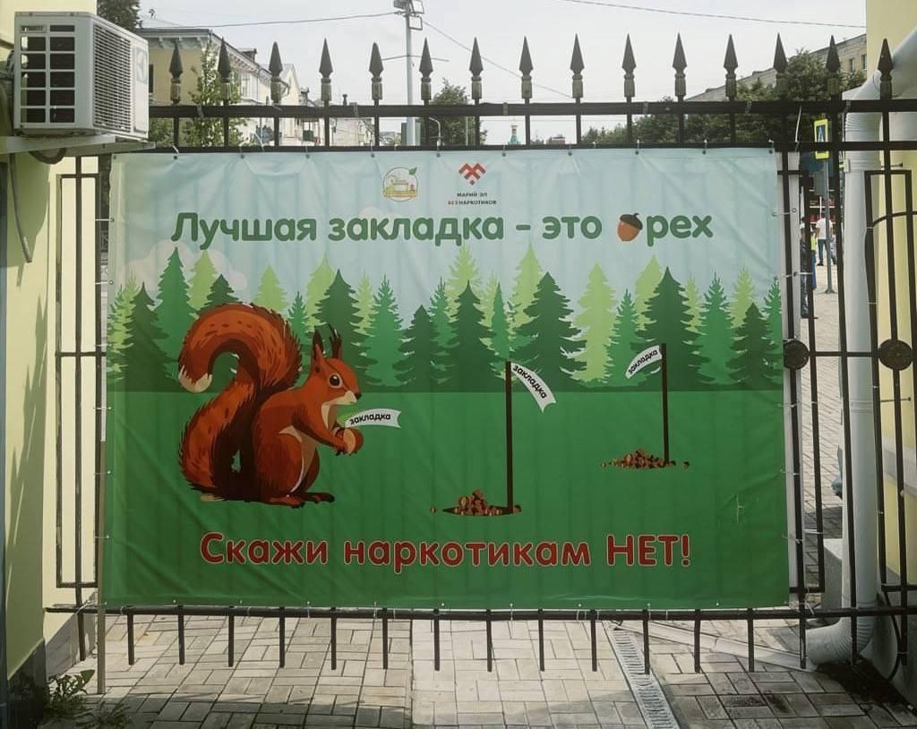 «Лучшая закладка — это орех»: белочка стала символом борьбы с наркоманией в Марий Эл — плакат занял призовое место в конкурсе рекламы