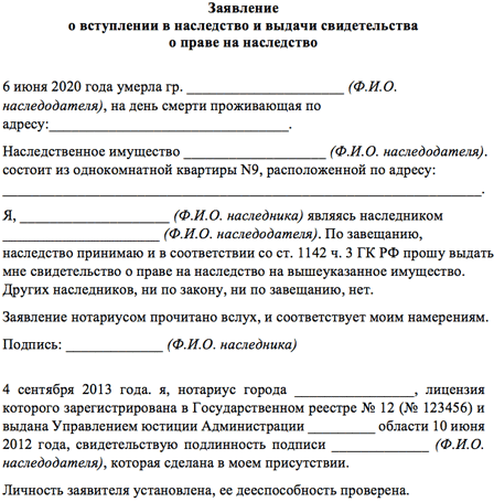 - заранее или у нотариуса составить заявление о принятии наследства по завещанию;