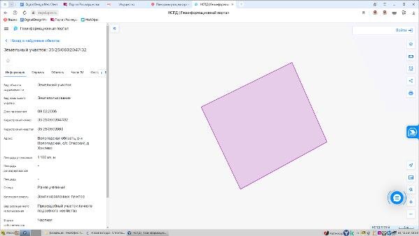 Название: Земельный участок, площадью 1100 кв.м., кадастровый номер 35:25:0602047:32, расположенный по адресу: Вологодская область