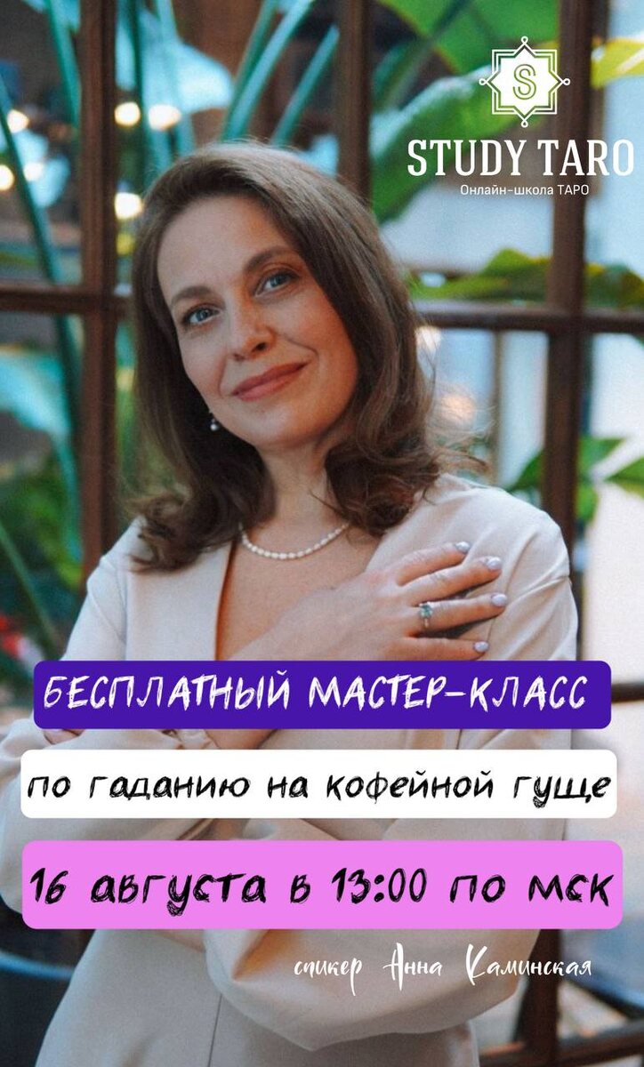 🦋 Узнайте, как видеть и читать символы на кофейной гуще Друзья, не буду долго тянуть и хочу пригласить вас на уникальный эфир. 📅 16 августа в 13:00 по Москве мы соберёмся на бесплатном практическом мастер-классе «Гадание на кофейной гуще: как читать знаки и предсказывать будущее». Мастер-класс проведет Анна Каминская. Она практикующий мастер, который более 20 лет посвятил себя изучению символов, знаков и тонкой магии. Анна не просто обучает технике, она помогает слышать себя глубже. В этот день вы узнаете: - Как и почему узоры в чашке отражают события вашей жизни. - С чего начать, чтобы символы стали понятными и живыми. - Маленькие секреты, которые делают предсказания точными. - Как объединить кофейное гадание с другими практиками для более полного ответа. - И прямо в эфире — гадание на финансы ближайшего месяца. 🎁 Каждому участнику мы подарим справочник «О чём говорит чашка? Примеры предсказаний на кофейной гуще», чтобы вы могли продолжать практику дома. Это будет тёплая, к