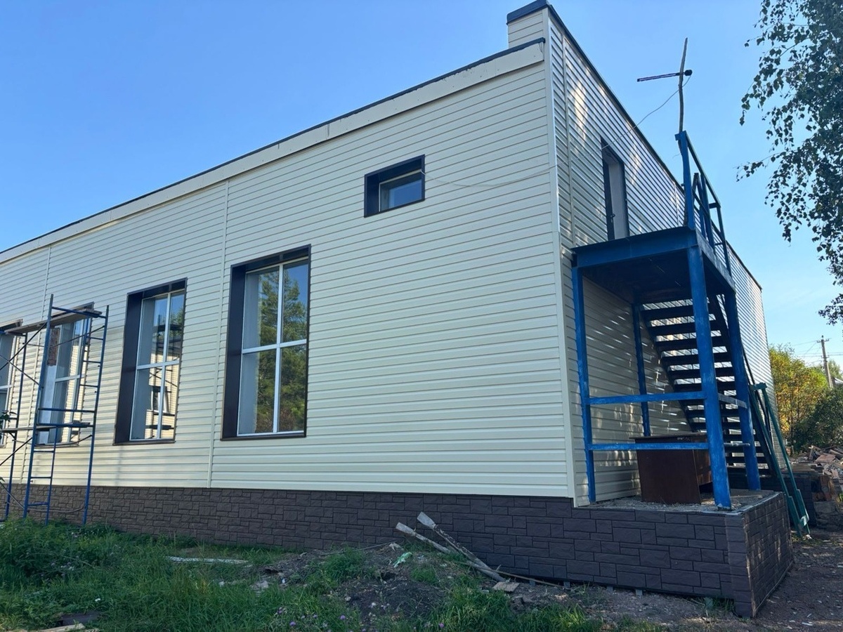В Кинзебулатово полным ходом идёт капитальный ремонт Дома культуры и благоустройство территории вокруг него. Это место хорошо знакомо жителям — здесь проходят концерты, встречи и праздники. После обновления оно станет ещё уютнее и современнее. На сегодня уже полностью обшили фасад металлическим сайдингом, закончили работы на крыше. Внутри кипит отделка: в библиотеке уложили черновой пол, в коридорах появилась керамическая плитка, в танцевальном зале установили новые откосы на окнах. В туалетах завершена облицовка, а мастера уже прокладывают систему отопления и обустраивают главный вход.