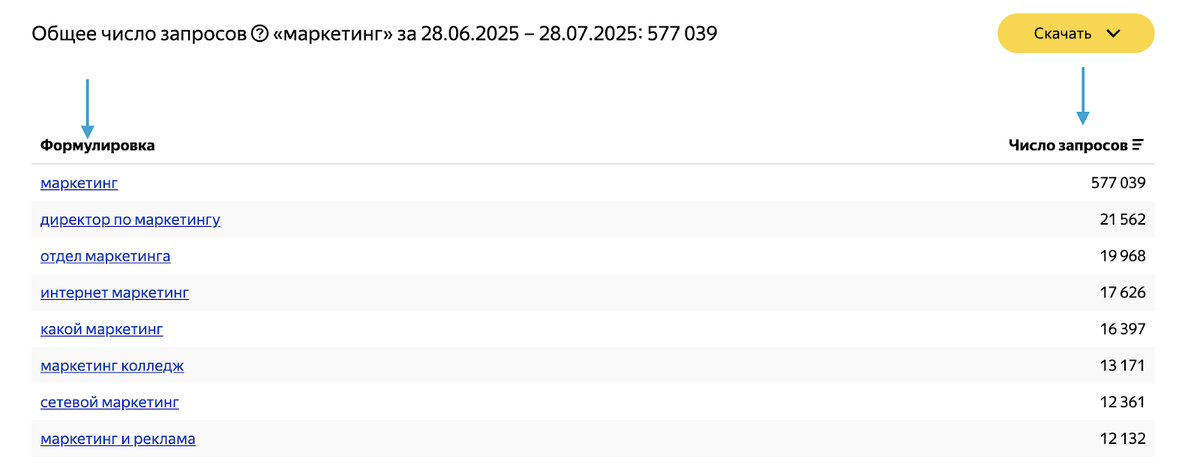 - Яндекс Вордстат показывает статистику по запросам поисковой системы: